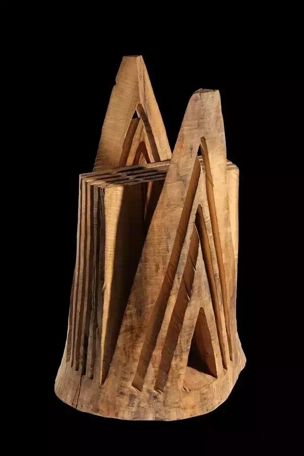 “山”系列是萧长正目前最新的创作,以单块的实木量体为单位,经由链锯的削减动作,为“山”的实体赋予流动的空间虚实与层次变化。”转折系列“具极简主义风格,简单的直线,却最能将空间感体现出来将线条与空间发挥到极致。留下来的木头和被链锯去掉后剩下的空的部分,有一种相互显示的关系,让人们看到虚与实的双重存在。